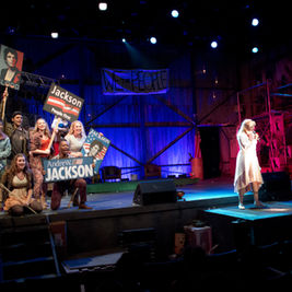 "Perhaps most important, though, is director Myrona DeLaney’s understanding of the show’s innards, of the ironic sentimentality, tasty humor and immense affection the script has for the familial foibles of its characters. No program credit is given for choreography, so one presumes DeLaney did that along with her sharp, interesting staging. In any case, the dancing is inventive and bright."